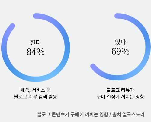 포털 검색 사용자의 40% 이상은 검색 후 블로그 콘텐츠를 가장 많이 참고 하고 있으며, 블로그 콘텐츠가 구매에 가장